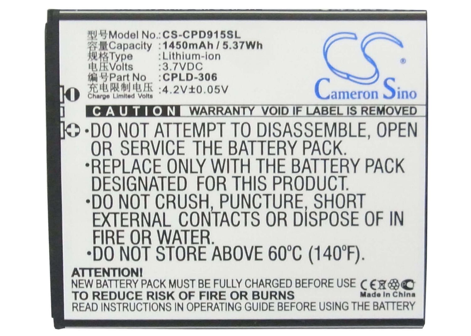Unlock uninterrupted performance with the Cameron Sino CS-CPD915SL replacement battery, designed specifically for Coolpad SmartPhone. This high-quality 1450mAh / 5.37Wh Li-ion battery delivers a reliable 3.7V voltage with an energy rating of 5.37Wh, ensuring your device operates at peak efficiency throughout extended sessions. Whatever you are doing this battery provides the power and reliability you need.