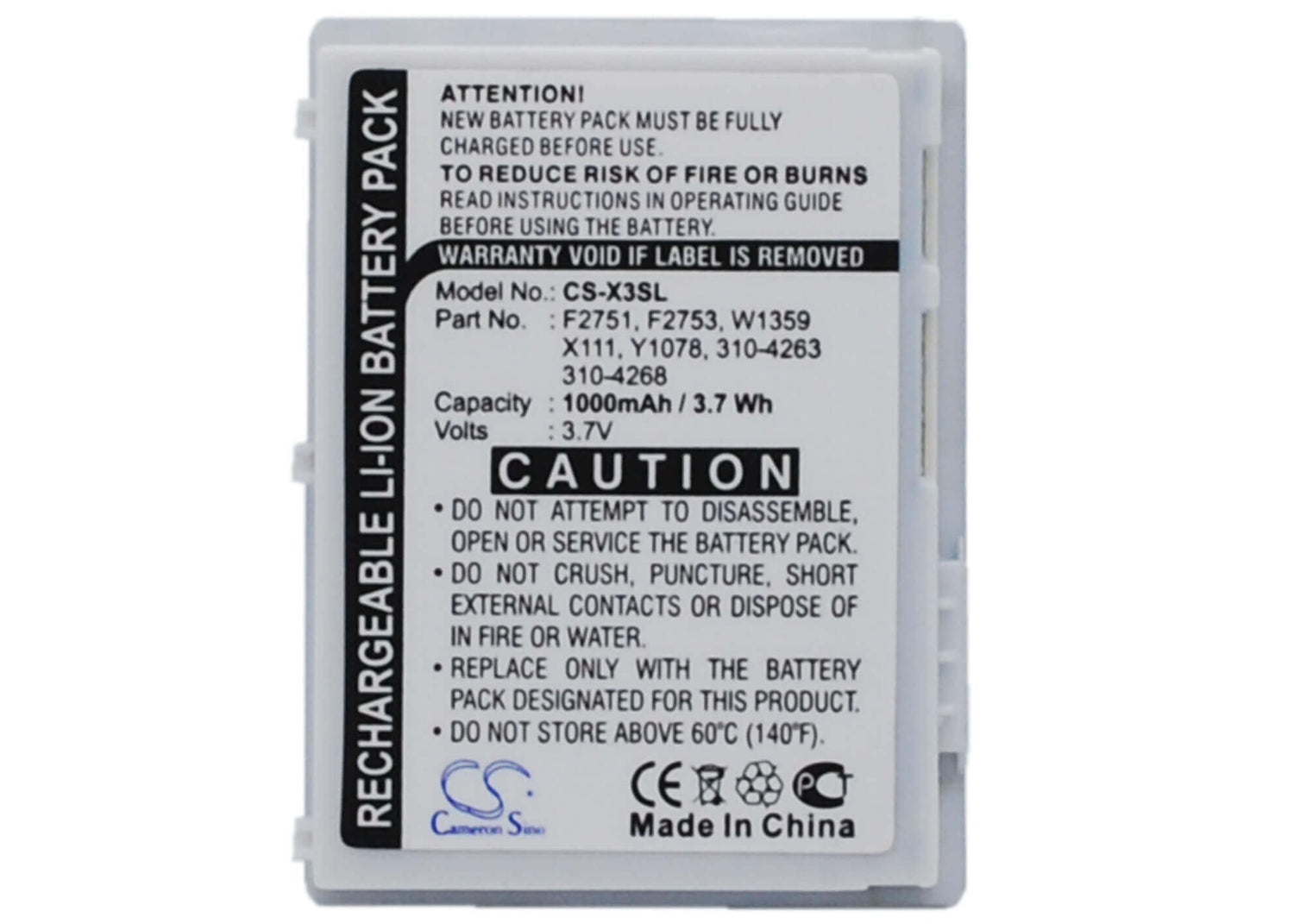 Unlock uninterrupted performance with the Cameron Sino CS-X3SL replacement battery, designed specifically for Dell PDA. This high-quality 1000mAh Li-ion battery delivers a reliable 3.7V voltage with an energy rating of 3.7Wh, ensuring your device operates at peak efficiency throughout extended sessions. Whatever you are doing this battery provides the power and reliability you need.