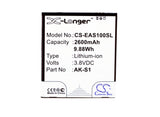 3.8V, Li-ion, 2600mAh, SmartPhone battery fits Emporia, Ak-s1, Smart, Smart 1, 9.88Wh
