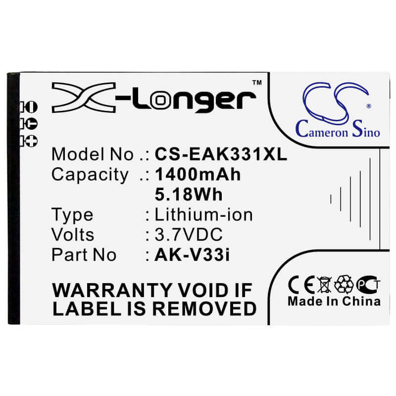 3.7V, Li-ion, 1400mAh, SmartPhone battery fits Emporia, Ak-v33i, Care Plus, Careplus, 5.18Wh