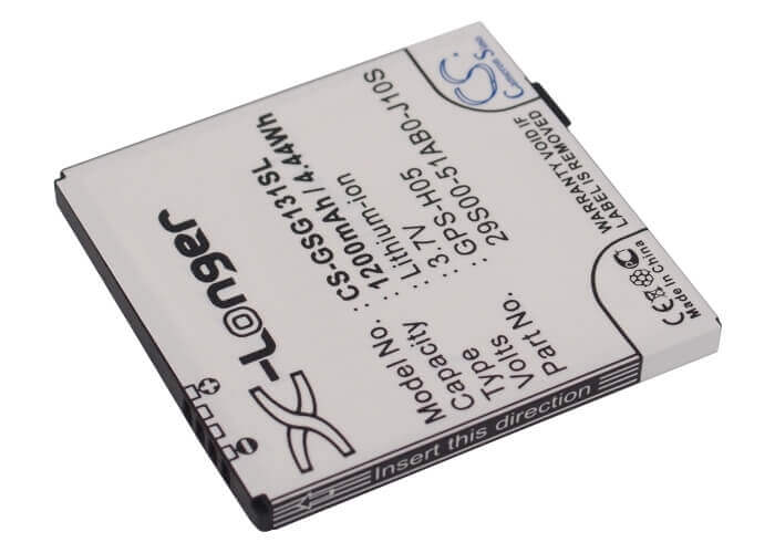 3.7V, Li-ion, 1200mAh, SmartPhone battery fits Gsmart, 29s00-51ab0-j10s, Gsmart G1310, Gsmart G1315, 4.44Wh