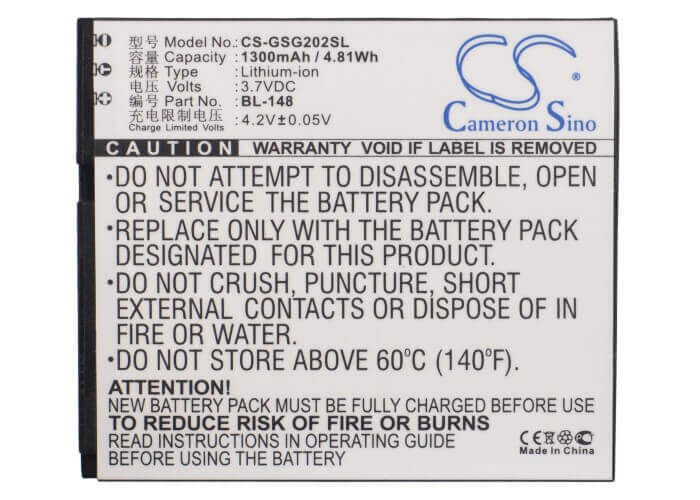 Unlock uninterrupted performance with the Cameron Sino CS-GSG202SL replacement battery, designed specifically for Gigabyte, Gsmart SmartPhone. This high-quality 1300mAh / 4.81Wh Li-ion battery delivers a reliable 3.7V voltage with an energy rating of 4.81Wh, ensuring your device operates at peak efficiency throughout extended sessions. Whatever you are doing this battery provides the power and reliability you need.