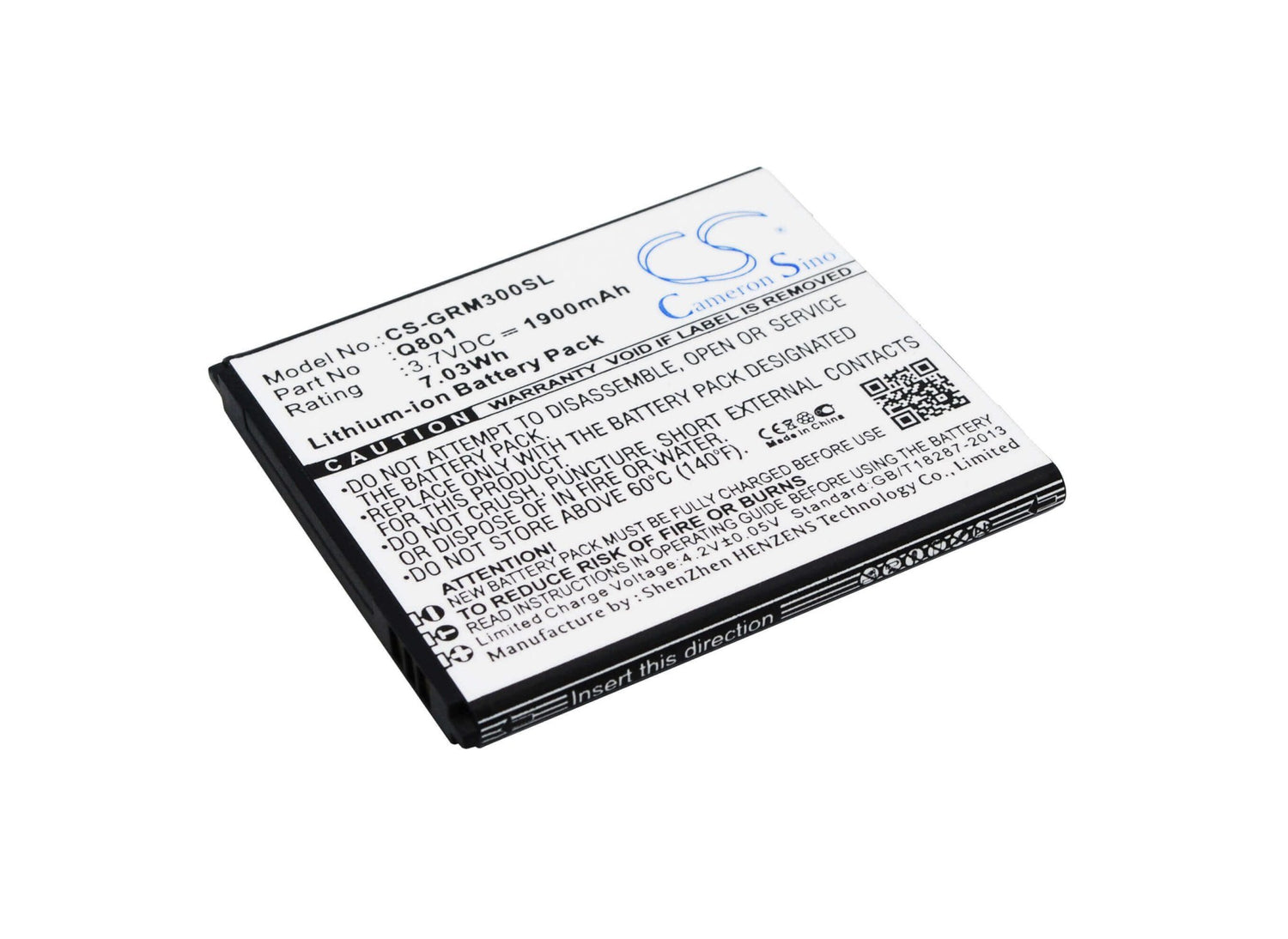 3.7V, Li-ion, 1900mAh, SmartPhone battery fits Green Orange, Q801, Go M3, M3, 7.03Wh