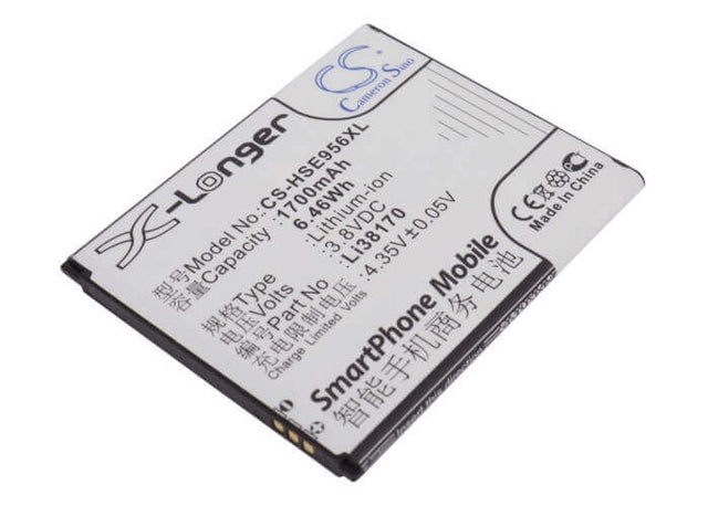 3.8V, Li-ion, 1700mAh, SmartPhone battery fits Hisense, Li38170, E956q, E958q, 6.46Wh