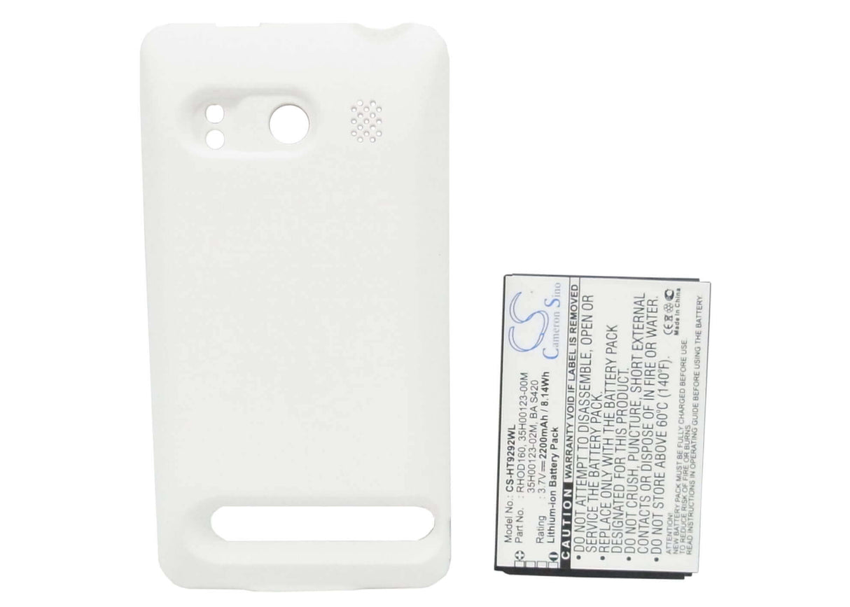 Battery For Htc Evo 4g, A9292, Supersonic, White Back Cover 3.7v, 2200mah - 8.14wh