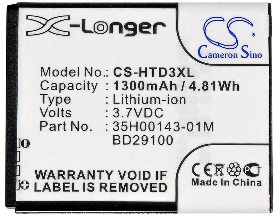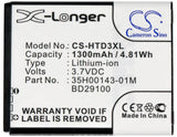 Cameron Sino CS-HTD3XL Replacement Battery for At&t, T-mobile, Htc SmartPhone - 1300mAh / 4.81Wh