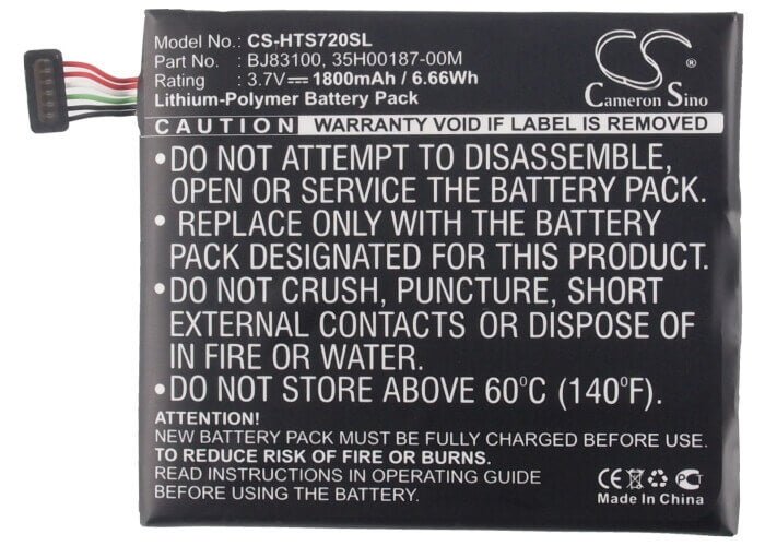 Unlock uninterrupted performance with the Cameron Sino CS-HTS720SL replacement battery, designed specifically for Htc SmartPhone. This high-quality 1800mAh / 6.84Wh Li-Polymer battery delivers a reliable 3.8V voltage with an energy rating of 6.84Wh, ensuring your device operates at peak efficiency throughout extended sessions. Whatever you are doing this battery provides the power and reliability you need.