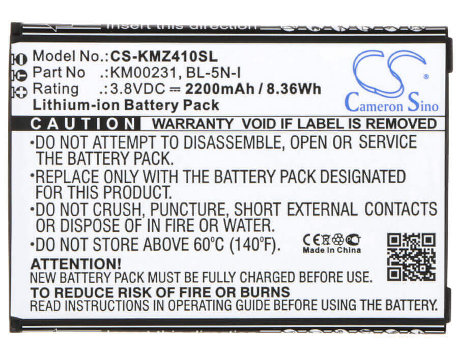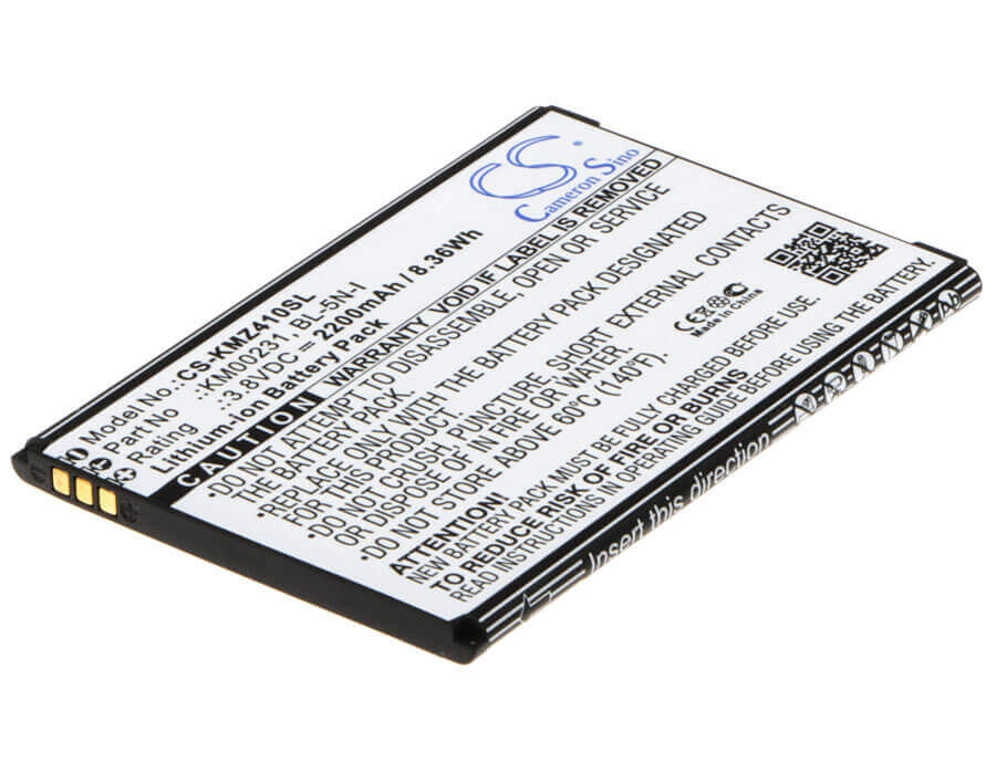 3.8V, Li-ion, 2200mAh, SmartPhone battery fits Smartfren, Kruger&matz, Bl-5n-i, Km0410, Km0413, 8.36Wh