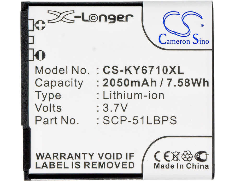 3.7V, Li-ion, 2050mAh, SmartPhone battery fits Kyocera, Scp-51lbps, E6710, E6715, 7.59Wh