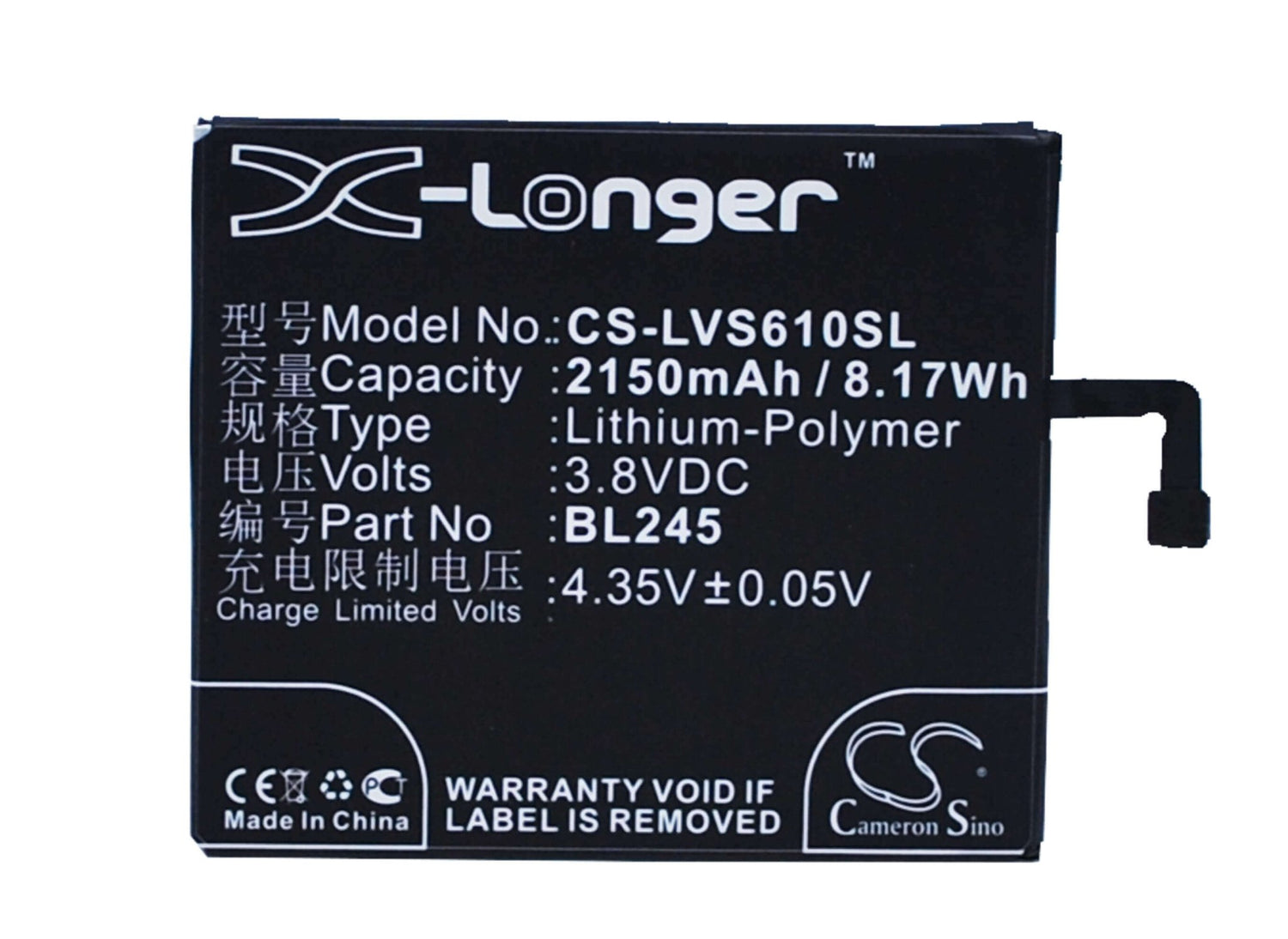 Cameron Sino CS-LVS610SL Replacement Battery for Lenovo SmartPhone - 2150mAh / 8.17Wh