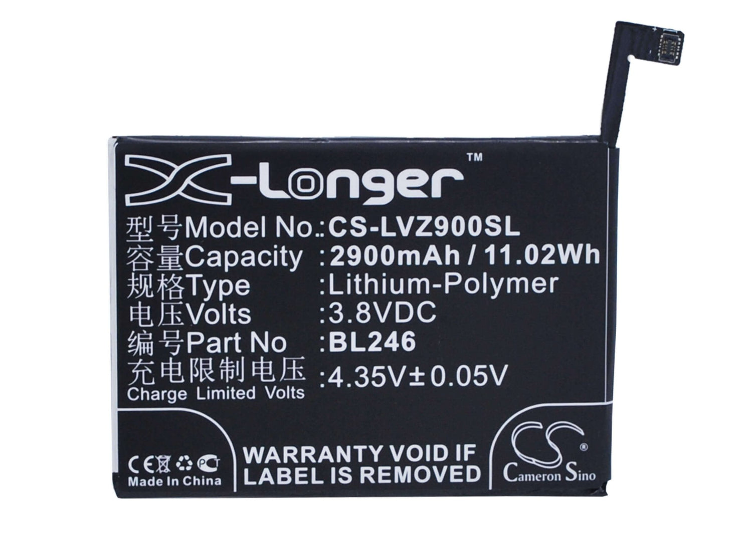 Cameron Sino CS-LVZ900SL Replacement Battery for Lenovo SmartPhone - 2900mAh / 11.02Wh