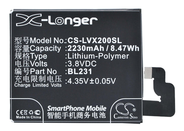 Cameron Sino CS-LVX200SL Replacement Battery for Lenovo SmartPhone - 2230mAh / 8.47Wh