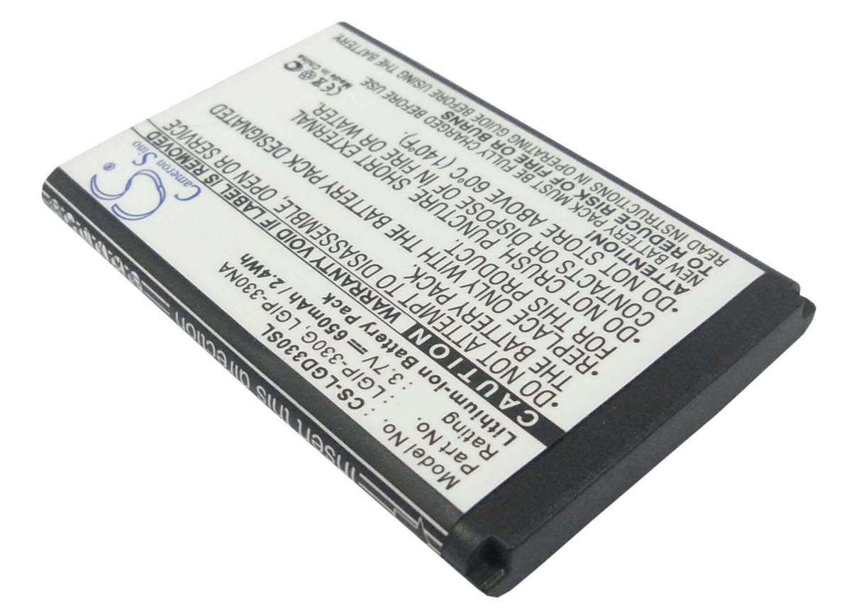 3.7V, Li-ion, 650mAh, SmartPhone battery fits Lg, Lgip-330na, Gb220, Gb230, 2.41Wh