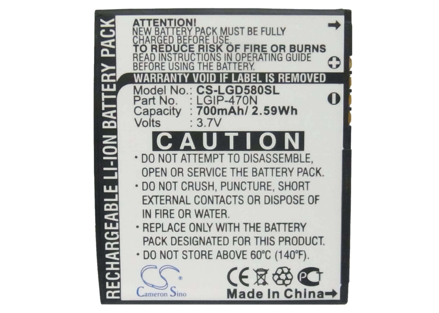 Cameron Sino CS-LGD580SL Replacement Battery for Lg SmartPhone - 700mAh / 2.59Wh