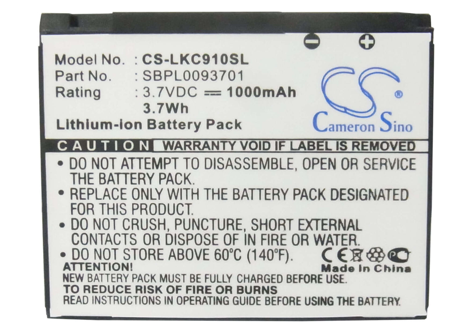 Cameron Sino CS-LKC910SL Replacement Battery for Lg SmartPhone - 1000mAh / 3.7Wh