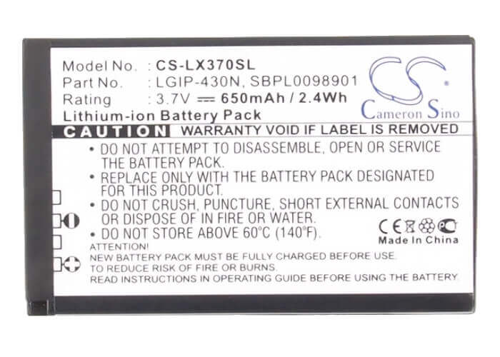 Cameron Sino CS-LX370SL Replacement Battery for Lg SmartPhone - 650mAh / 2.41Wh