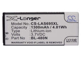 3.7V, Li-ion, 1300mAh, SmartPhone battery fits Lg, Bl-48on, As695, Lgms695-r, 4.81Wh
