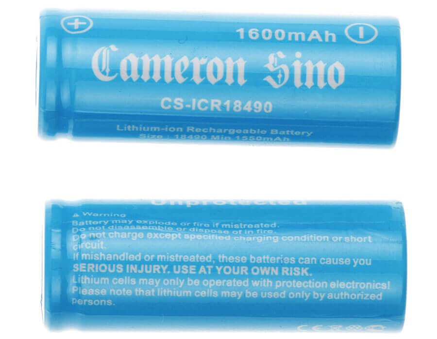 Cameron Sino CS-ICR18490NE Lithium Ion 18490/18500 Unprotected 3.7V Battery Pack (2pcs) – 1600mAh 5.92Wh