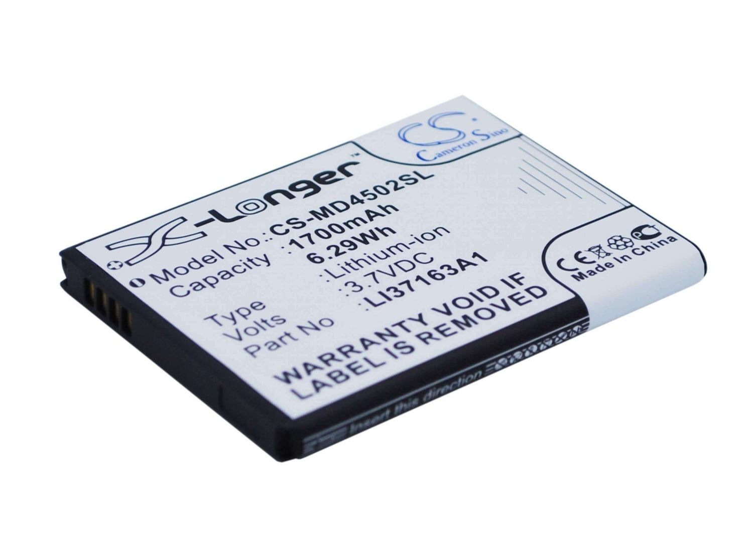 Unlock uninterrupted performance with the Cameron Sino CS-MD4502SL replacement battery, designed specifically for Medion SmartPhone. This high-quality 1700mAh / 6.29Wh Li-ion battery delivers a reliable 3.7V voltage with an energy rating of 6.29Wh, ensuring your device operates at peak efficiency throughout extended sessions. Whatever you are doing this battery provides the power and reliability you need.