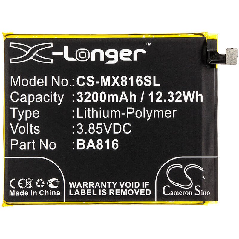 Unlock uninterrupted performance with the Cameron Sino CS-MX816SL replacement battery, designed specifically for Meizu SmartPhone. This high-quality 3200mAh / 12.32Wh Li-Polymer battery delivers a reliable 3.85V voltage with an energy rating of 12.32Wh, ensuring your device operates at peak efficiency throughout extended sessions. Whatever you are doing this battery provides the power and reliability you need.