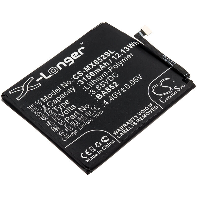 3.85V, Li-Polymer, 3150mAh, SmartPhone battery fits Meizu, Ba852, 16 Global, 16 Global Dual Sim, 12.13Wh