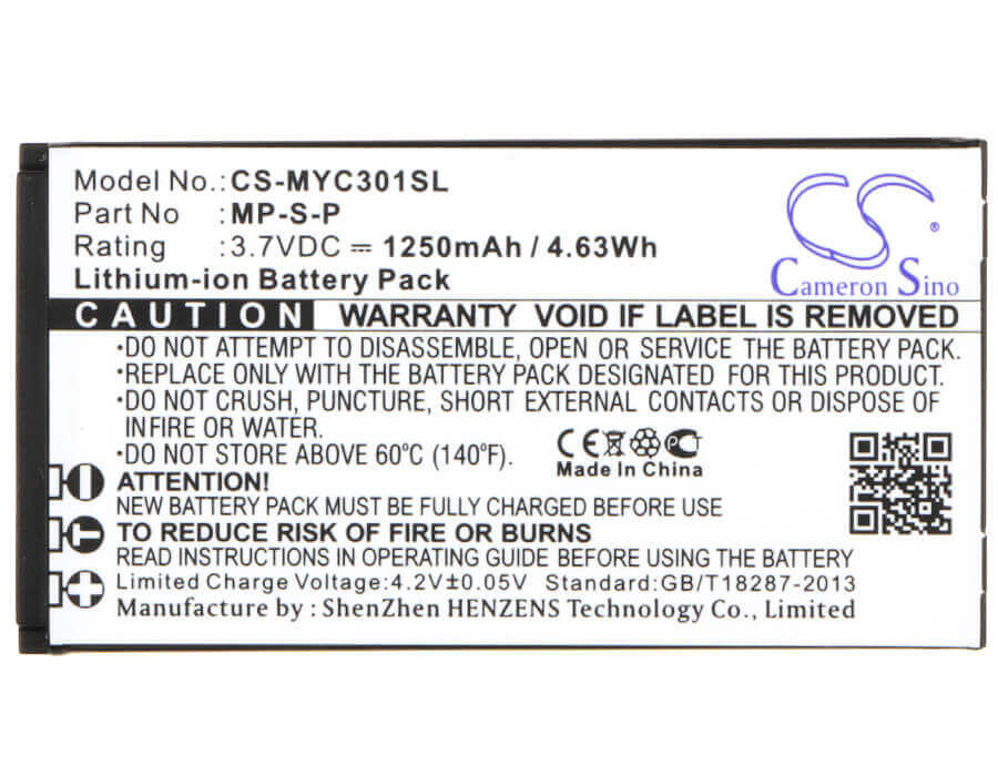 Unlock uninterrupted performance with the Cameron Sino CS-MYC301SL replacement battery, designed specifically for Myphone SmartPhone. This high-quality 1250mAh / 4.63Wh Li-ion battery delivers a reliable 3.7V voltage with an energy rating of 4.63Wh, ensuring your device operates at peak efficiency throughout extended sessions. Whatever you are doing this battery provides the power and reliability you need.
