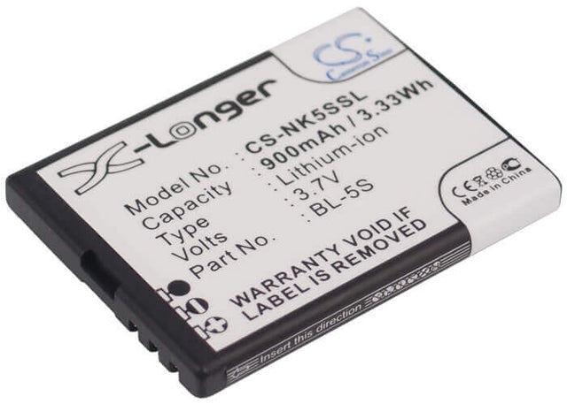 3.7V, Li-ion, 900mAh, SmartPhone battery fits Nokia, Bl-5s, 2330, 2330 Classic, 3.33Wh