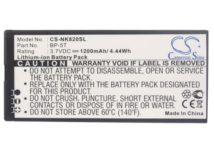 Cameron Sino CS-NK820SL Replacement Battery for Nokia SmartPhone - 1200mAh / 4.44Wh