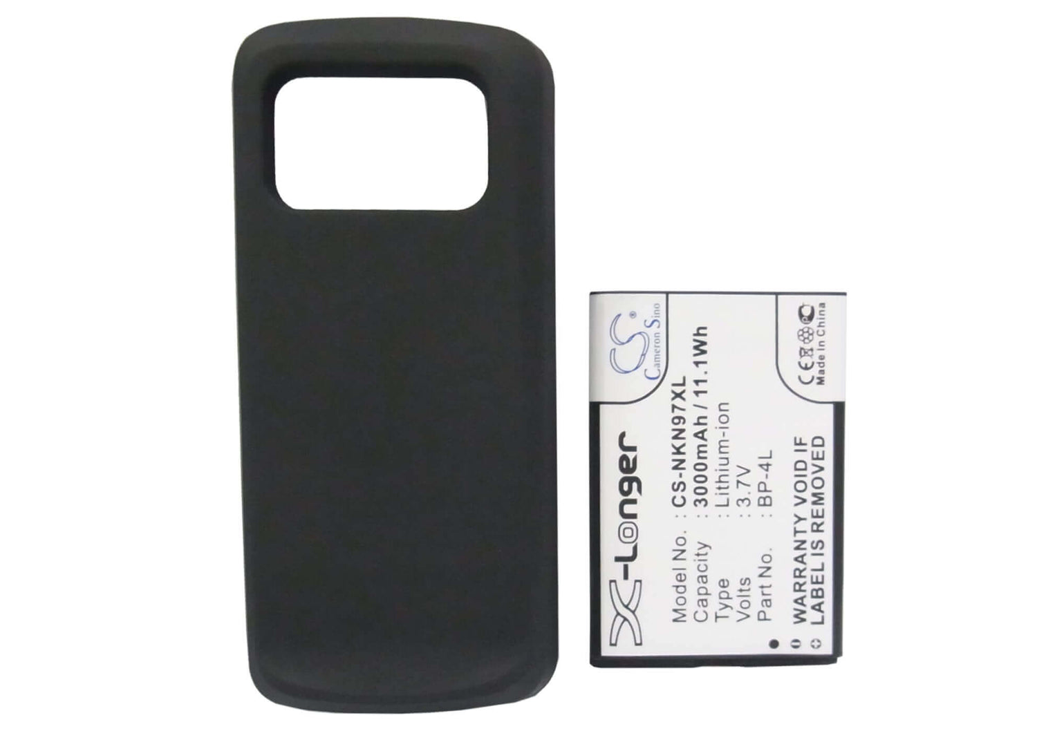 3.7V, Li-ion, 3000mAh, SmartPhone battery fits Nokia, (Black),Bp-4l, N97, 11.1Wh