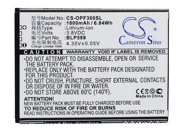 Cameron Sino CS-OPF300SL Replacement Battery for Oppo SmartPhone - 1800mAh / 6.84Wh