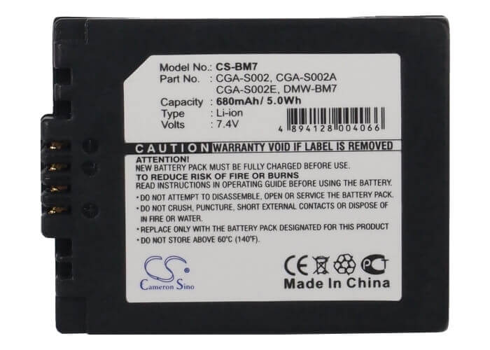 Cameron Sino CS-BM7 Replacement Battery for Panasonic Lumix Cameras – 680mAh