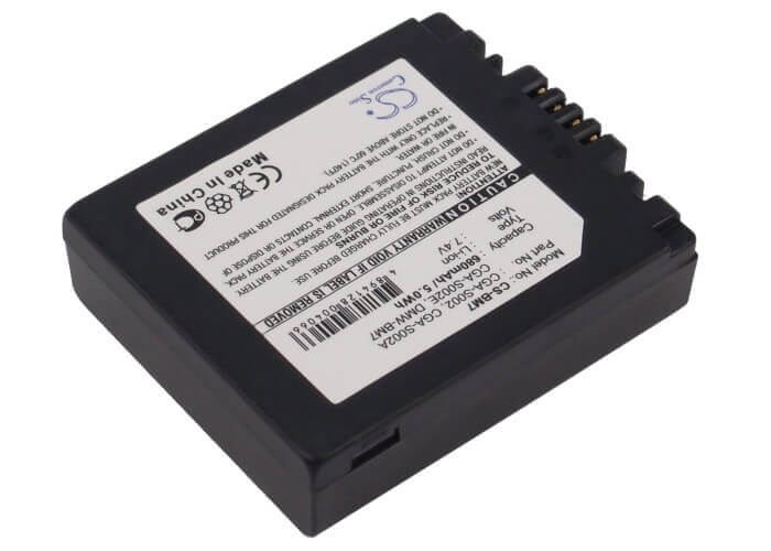 7.4V, Li-ion, 680mAh, Camera battery fits Panasonic, Cga-s002, Dmc-fz10, Dmc-fz10eb, 5.032Wh