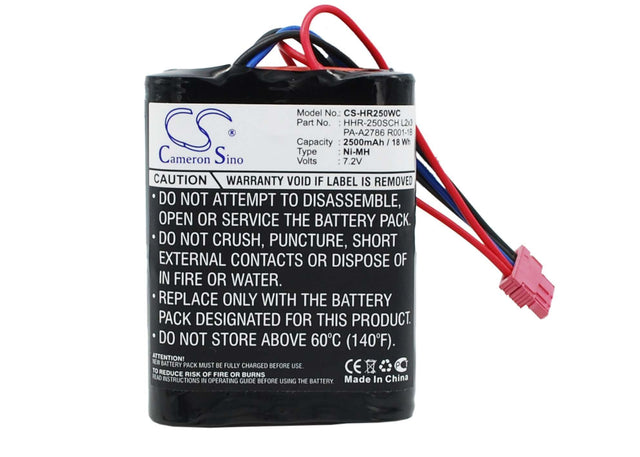 7.2V, Ni-MH, 2500mAh, Vehicles battery fits Panasonic, Hhr-250sch L2x3, Hhr-250sch L2x3, Pa-a2786 R001-1b, 18Wh