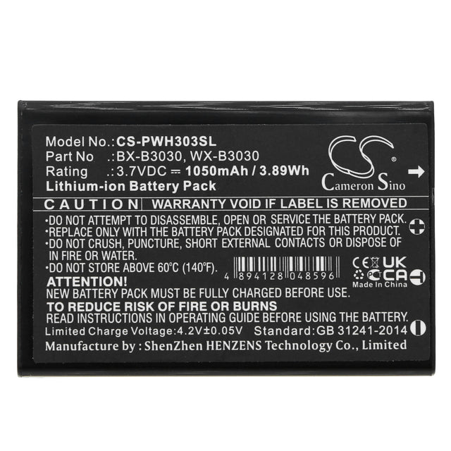 Unlock uninterrupted performance with the Cameron Sino CS-PWH303SL replacement battery, designed specifically for Panasonic, Listen Technologies Headset. This high-quality 1050mAh / 3.89Wh Li-ion battery delivers a reliable 3.7V voltage with an energy rating of 3.89Wh, ensuring your device operates at peak efficiency throughout extended sessions. Whatever you are doing this battery provides the power and reliability you need.