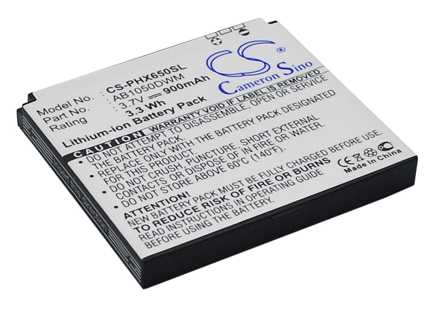 Cameron Sino CS-PHX650SL Replacement Battery for Philips SmartPhone - 900mAh / 3.33Wh
