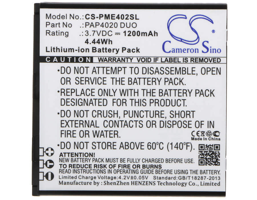 Unlock uninterrupted performance with the Cameron Sino CS-PME402SL replacement battery, designed specifically for Prestigio SmartPhone. This high-quality 1200mAh / 4.44Wh Li-ion battery delivers a reliable 3.7V voltage with an energy rating of 4.44Wh, ensuring your device operates at peak efficiency throughout extended sessions. Whatever you are doing this battery provides the power and reliability you need.
