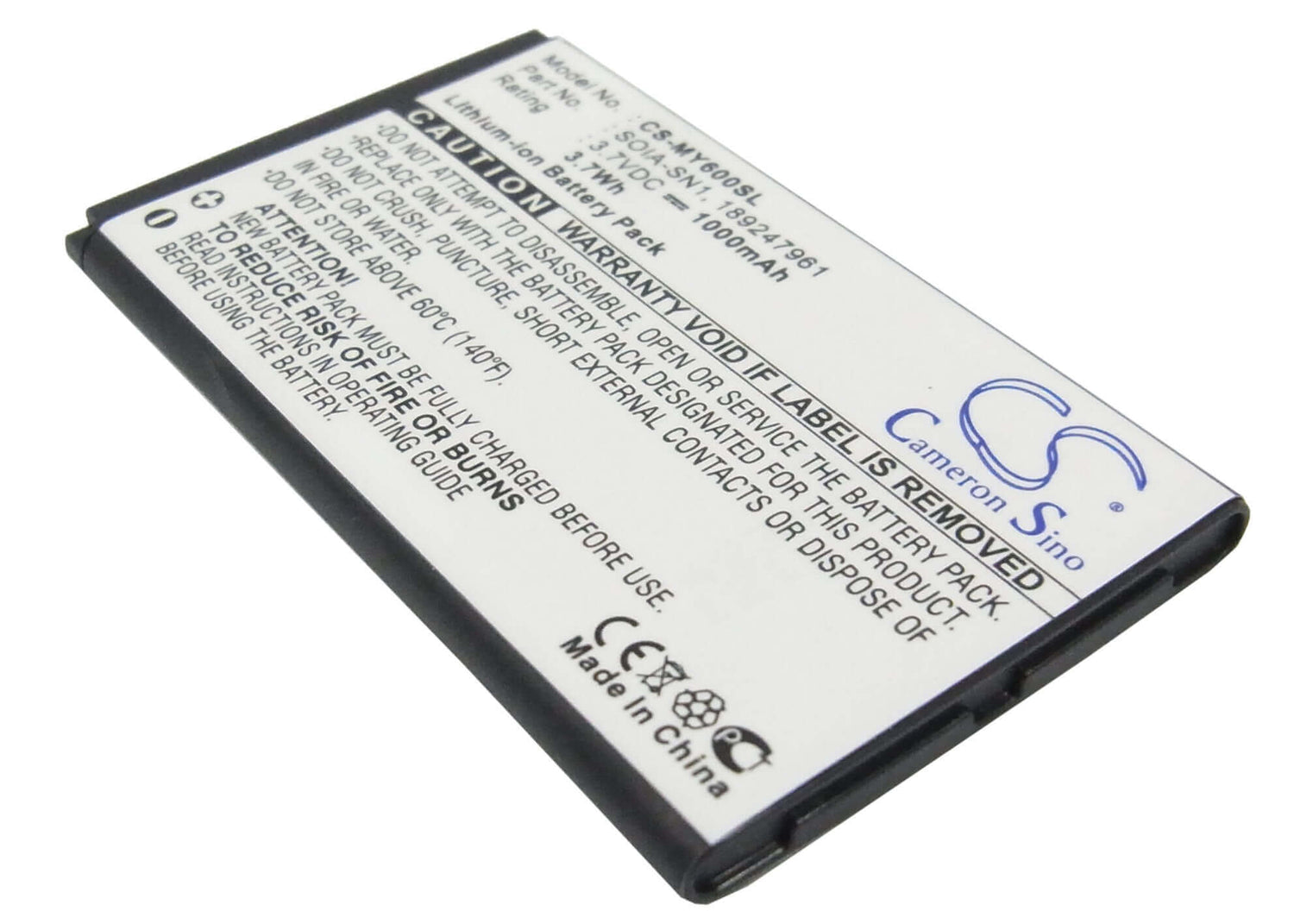 Unlock uninterrupted performance with the Cameron Sino CS-MY600SL replacement battery, designed specifically for Sagem SmartPhone. This high-quality 1000mAh / 3.7Wh Li-ion battery delivers a reliable 3.7V voltage with an energy rating of 3.7Wh, ensuring your device operates at peak efficiency throughout extended sessions. Whatever you are doing this battery provides the power and reliability you need.