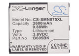 3.8V, Li-ion, 2600mAh, SmartPhone battery fits Samsung, B605ba, Galaxy J, Sgh-n075t, 9.88Wh