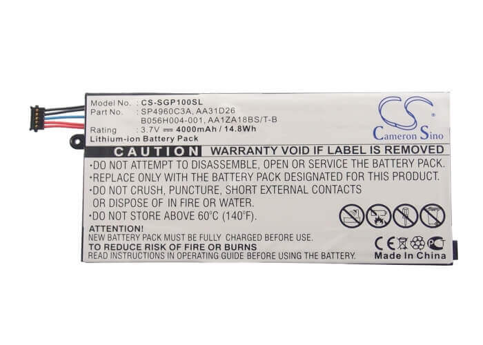 Unlock uninterrupted performance with the Cameron Sino CS-SGP100SL replacement battery, designed specifically for Samsung Tablet. This high-quality 4000mAh / 14.80Wh Li-Polymer battery delivers a reliable 3.7V voltage with an energy rating of 14.80Wh, ensuring your device operates at peak efficiency throughout extended sessions. Whatever you are doing this battery provides the power and reliability you need.