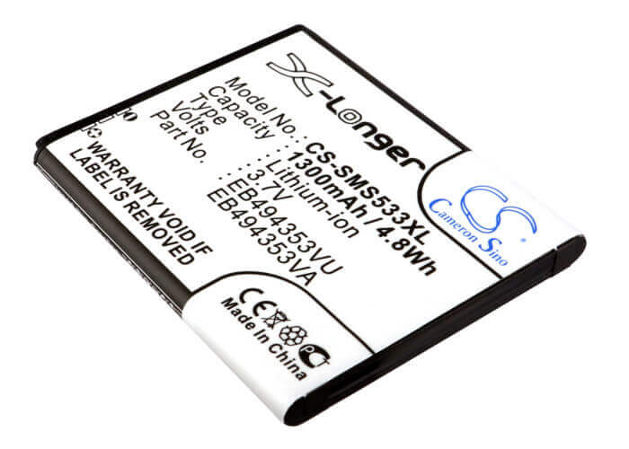 Unlock uninterrupted performance with the Cameron Sino CS-SMS533XL replacement battery, designed specifically for Samsung SmartPhone. This high-quality 1300mAh / 4.81Wh Li-ion battery delivers a reliable 3.7V voltage with an energy rating of 4.81Wh, ensuring your device operates at peak efficiency throughout extended sessions. Whatever you are doing this battery provides the power and reliability you need.