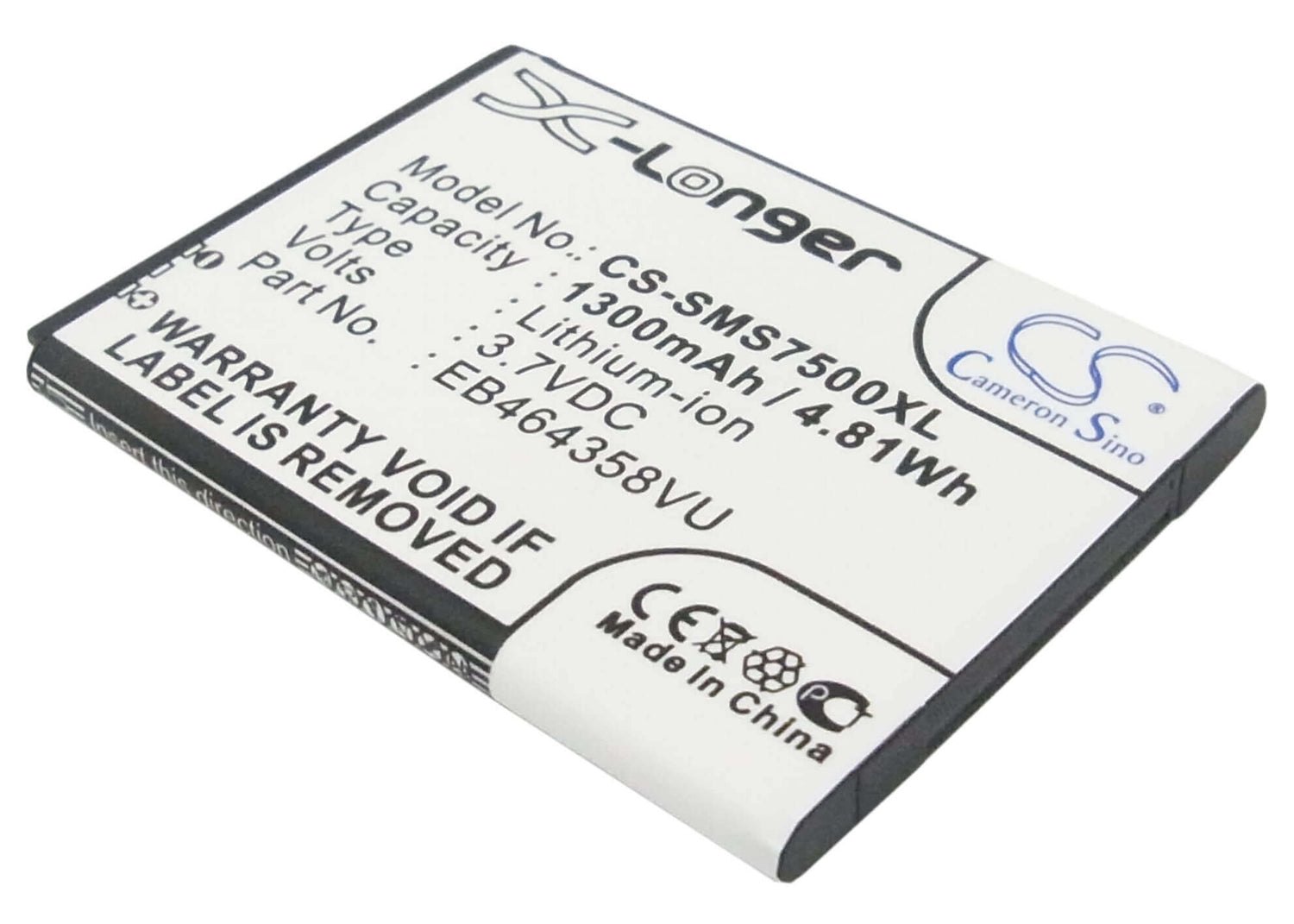 Unlock uninterrupted performance with the Cameron Sino CS-SMS7500XL replacement battery, designed specifically for Samsung SmartPhone. This high-quality 1300mAh / 4.81Wh Li-ion battery delivers a reliable 3.7V voltage with an energy rating of 4.81Wh, ensuring your device operates at peak efficiency throughout extended sessions. Whatever you are doing this battery provides the power and reliability you need.