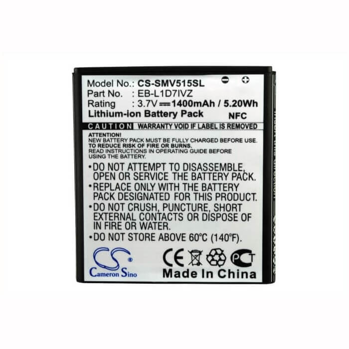 Unlock uninterrupted performance with the Cameron Sino CS-SMV515SL replacement battery, designed specifically for Verizon, Samsung SmartPhone. This high-quality 1400mAh / 5.18Wh Li-ion battery delivers a reliable 3.7V voltage with an energy rating of 5.18Wh, ensuring your device operates at peak efficiency throughout extended sessions. Whatever you are doing this battery provides the power and reliability you need.