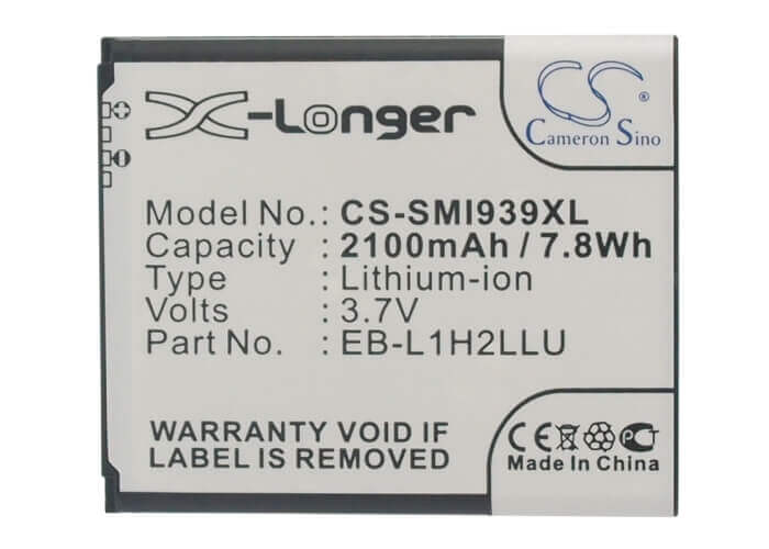 All of our products are designed to use only the highest quality parts and components to provide a long and useful life. Quite often due to the data not being available this battery will fit unlisted models. As this information comes available we do update these fitments on a regular basis. If you are not sure as to which battery you need to order please contact us and we can guide your selection. This battery is designed to replace the battery in models described below Chemistry Li-ion Voltage 3.7VCapacity2100mAh / 7.77Wh Warranty 1 Year Model Number CS-SMI939XL Color BlackDimensions(mm)58.10 x 50.30 x 5.70mmReplaces ManufacturersSamsungQuite often due to the data not being available this battery will fit unlisted models. As this information comes available we do update these fitments on a regular basis. If you are not sure as to which battery you need to order please contact us and we can guide your selection. Confirm the fitment of this battery by checking that your model and your battery number are shown in the details below. We offer a one-year warranty to guarantee against manufacturing defects unless otherwise stated, The warranty covers against defects from manufacture but not if the battery has been misused or modified. Battery life is dictated by a number of different factors, including temperature, charging frequency and type of charger. As a rule of thumb Nimh cells can be charged around 500 times, Lithium Ion around 400 times and Lithium polymer Around 400 times. This can increase or decrease depending on the use of the battery. If you are looking for a High quality replacement battery with ISO 9001 certifications in place then look no further. This battery is designed to be as robust and as safe as the original OEM battery. Cameron Sino actually manufacture batteries for many OEM companies. The only difference that you will find is the label that is installed. Check that your product is shown below in the products table. Special Remarks:-Device Models and Battery numbers that this battery is known to support:-Device Models SupportedNtt Docomo, Galaxy S 3, Galaxy S Iii, Galaxy S3, Galaxy Siii, Sc-06d, Samsung, Express 2, Galaxy Core Lite 4g, Galaxy Premier, Gt-i9260, Gt-i9268, Midas, Sch-i939, Sm-g3182, Sm-g3815, Sm-g386f Battery Models Supported Ntt Docomo, Asc29087, eb-l1h2llk, Eb-l1h2lld, Eb-l1h2llu, Sc07, Samsung, Asc29087, Eb-l1h2lld, Eb-l1h2llu, Eb-l1l7llu, Sc07Manufacturers that this product will replace:- Manufacturers Supported Actual manufacturerSamsungCameron SinoBattery Selection (Please read - Important)Confirm that all the details listed below match to your original battery before ordering. Some models have more than one battery type available and the only way you can confirm the correct battery is to remove the original.Please be advised that some higher capacity batteries are larger than the standard battery from the manufacturers. Please make sure that your model number is shown in the information above before ordering. If there is any doubt contact us first and we can advise if this is a suitable replacement for your device.