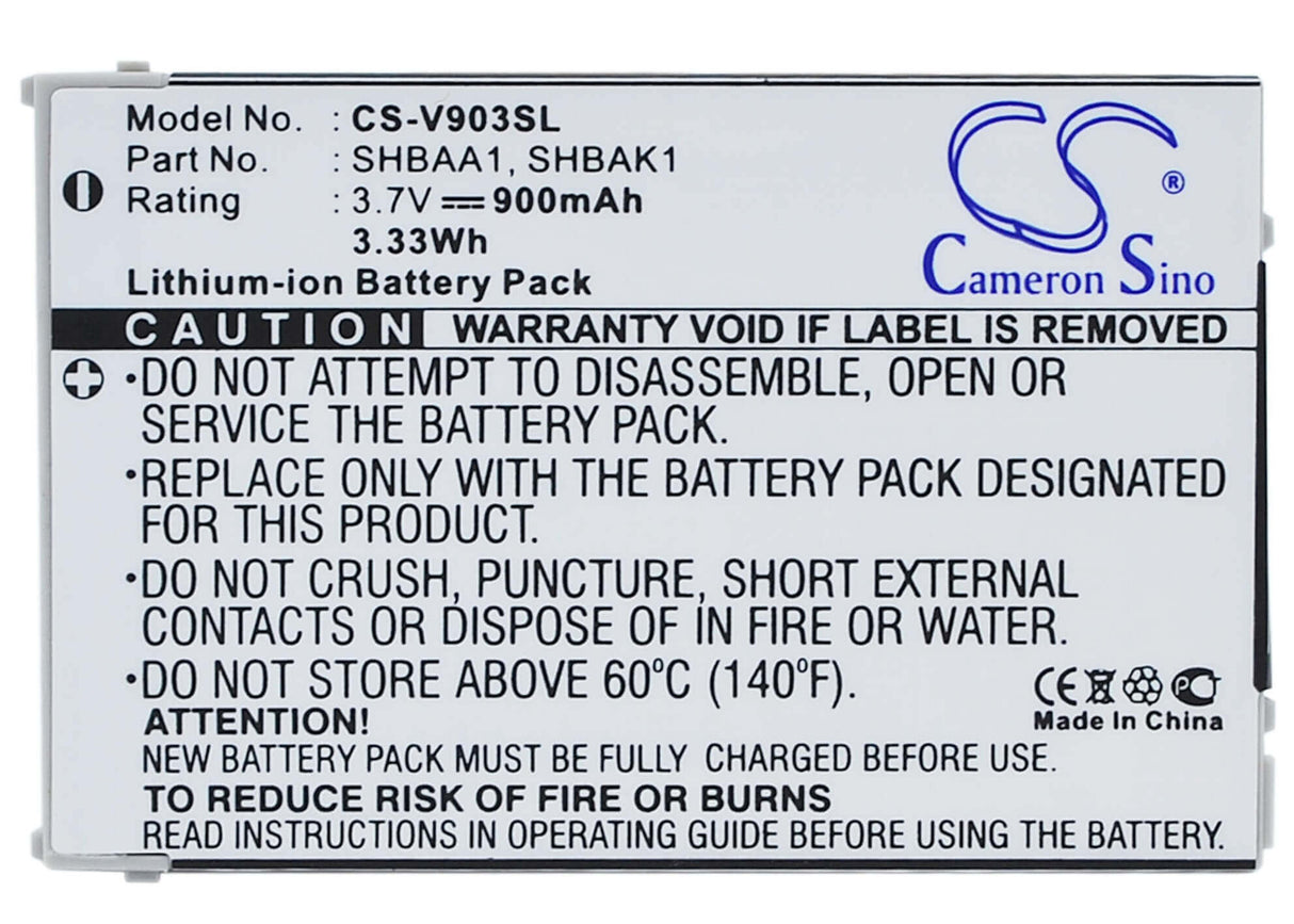 Canadian Batteries supplies the highest quality generic batteries available in the marketplace today. We endeavor to keep our data as current as possible, but there will be occasions when new models have not been updated to the website yet. Contact us and we will confirm fitment. This battery is designed to replace the battery in models described below Chemistry Li-ion Voltage 3.7VCapacity900mAh / 3.33Wh Warranty 1 Year Model Number CS-V903SL Color White GreyDimensions(mm)56.05 x 35.55 x 4.39mmReplaces ManufacturersSharpWe endeavor to keep our data as current as possible, but there will be occasions when new models have not been updated to the website yet. Contact us and we will confirm fitment. If you are unable to confirm the battery number before ordering you may be best to contact us before placing your order. The warranty we offer on all of our products is one of the best in the business, we make returns easy and will quickly test and replace any product found to have an issue within the 12 or 6 months warranty period. The average life of a Li-ion battery is around 400 cycles, This is the same for Lithium Polymer. Nimh should last for around 500 cycles. (A cycle is a discharge and recharge.) Please remember that a cycle will still be used, even if only partially discharged then recharged. it's always best to run the battery low and recharge when the battery reaches about 10 of it's charge left. This will extend the life of the battery. ISO 9001 certification ensures that strict manufacfuring standards are adhered to. Safety is primary concern and we use only high quality components to ensure that strict standards are met. The batteries we supply should perform as well as your original. This replacement battery is designed to replace the models shown below. Special Remarks:-Device Models and Battery numbers that this battery is known to support:-Device Models SupportedSharp, 703shf, 804sh, 903, 903sh, 905sh, Sh901ic, Sx313, Sx833, V703, V703sh, V801, V802sh, Wx-t71, Wx-t91, Softbank, 911sh, Vodafone, 703shf Battery Models Supported Sharp, Sh03, Shbaa1, Shbak1, Shbax1, Xn-1bt70, Softbank, Shbaa1, Shbak1, Shbax1, Xn-1bt70Manufacturers that this product will replace:- Manufacturers Supported Actual manufacturerSharpCameron SinoBattery Selection (Please read - Important)There are three important pieces of data that you will need to have to confirm the fitment of this battery in your device. You will need the model of your device, The battery number - found on the original battery and the manufacturer. This is the only way to be 100 sure this is the correct battery.Please be advised that some higher capacity batteries are larger than the standard battery from the manufacturers. Please make sure that your model number is shown in the information above before ordering. If there is any doubt contact us first and we can advise if this is a suitable replacement for your device.