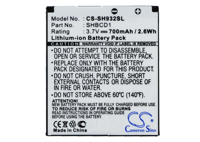 Cameron Sino CS-SH932SL Replacement Battery for Sharp SmartPhone - 700mAh / 2.59Wh