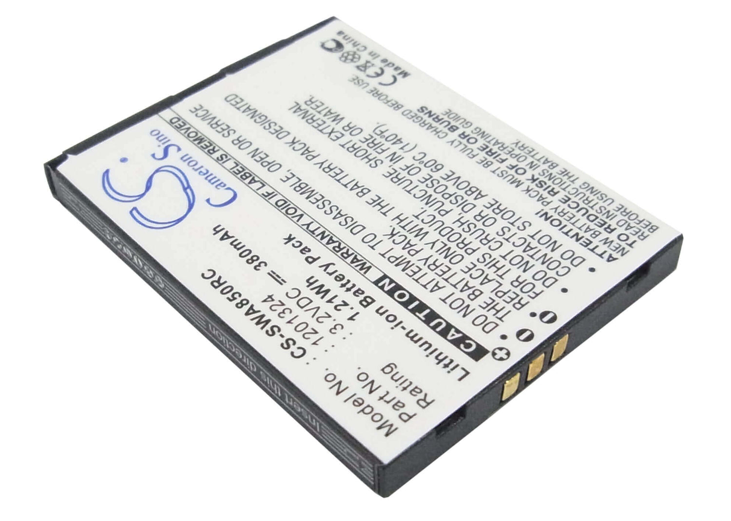 Unlock uninterrupted performance with the Cameron Sino CS-SWA850RC replacement battery, designed specifically for Sierra Wireless Hotspot. This high-quality 380mAh / 1.22Wh Li-ion battery delivers a reliable 3.2V voltage with an energy rating of 1.22Wh, ensuring your device operates at peak efficiency throughout extended sessions. Whatever you are doing this battery provides the power and reliability you need.