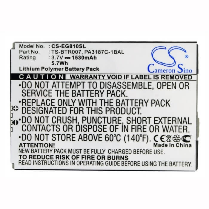 Unlock uninterrupted performance with the Cameron Sino CS-EG810SL replacement battery, designed specifically for Toshiba SmartPhone. This high-quality 1530mAh / 5.66Wh Li-Polymer battery delivers a reliable 3.7V voltage with an energy rating of 5.66Wh, ensuring your device operates at peak efficiency throughout extended sessions. Whatever you are doing this battery provides the power and reliability you need.