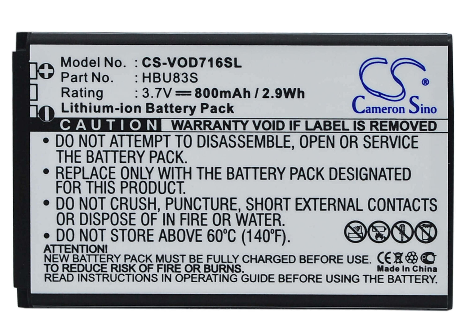 Cameron Sino CS-VOD716SL Replacement Battery for Vodafone SmartPhone - 800mAh / 2.96Wh