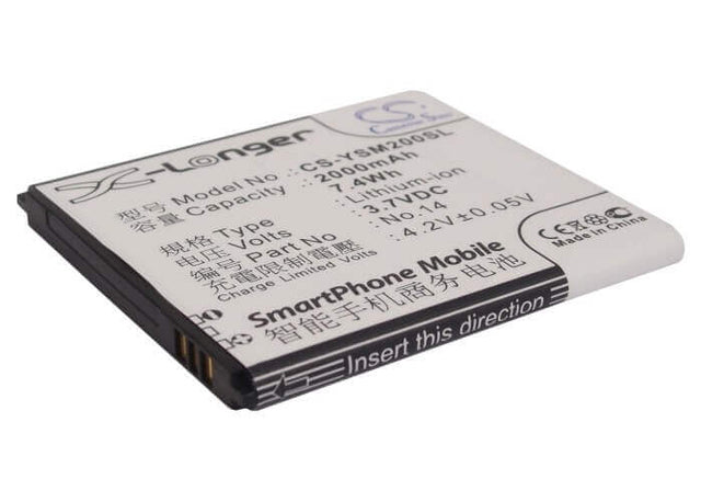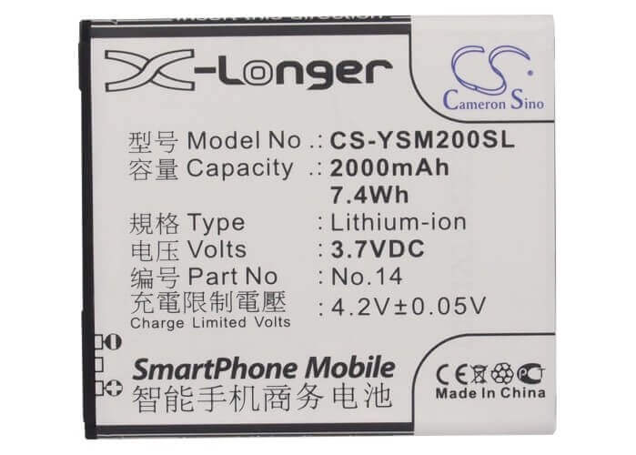 Unlock uninterrupted performance with the Cameron Sino CS-YSM200SL replacement battery, designed specifically for Yusun SmartPhone. This high-quality 2000mAh / 7.4Wh Li-ion battery delivers a reliable 3.7V voltage with an energy rating of 7.4Wh, ensuring your device operates at peak efficiency throughout extended sessions. Whatever you are doing this battery provides the power and reliability you need.