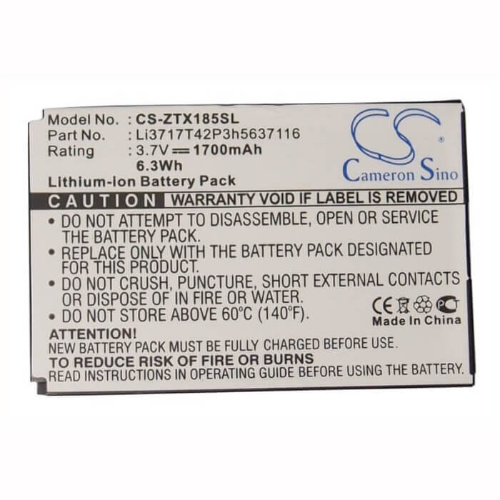 Unlock uninterrupted performance with the Cameron Sino CS-ZTX185SL replacement battery, designed specifically for Telstra, Zte SmartPhone. This high-quality 1700mAh / 6.29Wh Li-ion battery delivers a reliable 3.7V voltage with an energy rating of 6.29Wh, ensuring your device operates at peak efficiency throughout extended sessions. Whatever you are doing this battery provides the power and reliability you need.